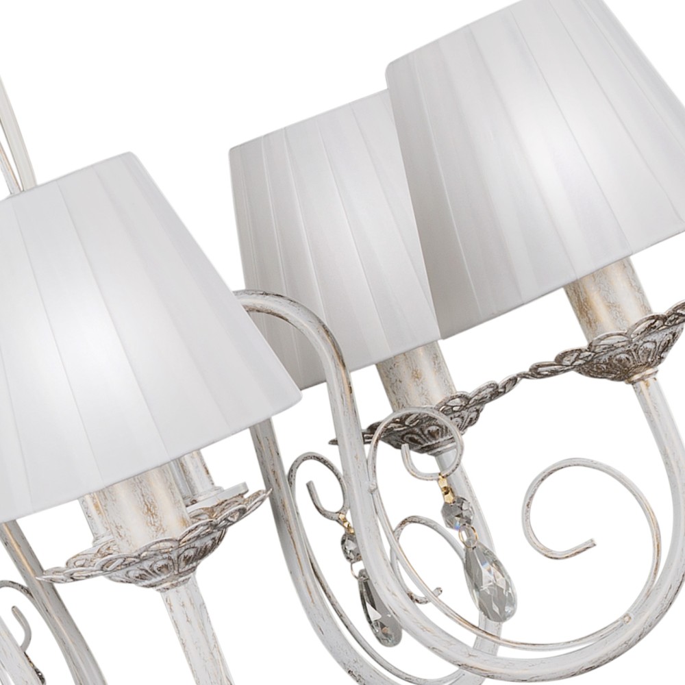 Люстра подвесная 5 ламп S1002-5 от Петрасвет – элегантное решение для роскошного интерьера Эта роскошная люстра подвесная S1002-5 от Петрасвет станет безусловной звездой вашего дома, преображая пространство и создавая атмосферу уюта и благополучия. Идеально сочетая в себе классическую элегантность, современный дизайн и высокое качество исполнения, эта люстра станет прекрасным дополнением к интерьеру в стиле неоклассика, прованс или, безусловно, подойдет для создания атмосферы роскоши в любом помещении. Сделанная в России, люстра S1002-5 – это гордость отечественного производителя, гарантирующая надежность и долговечность. Основные характеристики и преимущества: Роскошный дизайн: Люстра S1002-5 поражает своим изысканным дизайном. Пятиламповая конструкция, выполненная из металла, окрашенного в элегантную патину золота, придает светильнику благородный и утонченный вид. Хрустальные подвески, расположенные между лампами, добавляют блеска и игристых бликов, создавая неповторимую атмосферу. Абажуры, выполненные из высококачественной ткани, обеспечивают мягкое и рассеянное освещение, не раздражающее глаза. Высокое качество материалов: Люстра изготовлена из прочного и долговечного металла, который устойчив к коррозии и механическим повреждениям. Использование высококачественной ткани для абажуров гарантирует их долговечность и сохранение первоначального внешнего вида. Хрусталь премиум-класса обеспечивает превосходное качество световых бликов и создает эффектный визуальный эффект. 5 ламп для яркого и равномерного освещения: Пятиламповая конструкция обеспечивает достаточное количество света для освещения помещений площадью до 20 квадратных метров. Возможность использования различных типов ламп (накаливания, светодиодных, люминисцентных) позволяет подобрать оптимальное решение для ваших потребностей и предпочтений. Накаливания лампы обеспечат теплый, уютный свет, светодиодные – энергоэффективность и долговечность, люминисцентные – яркое и равномерное освещение. Регулировка высоты: Люстра имеет регулируемую высоту, что позволяет адаптировать ее к любым типам потолков. Ширина основания составляет всего 12 см, что делает ее подходящей для помещений с ограниченным пространством. Гарантия качества: Производитель предоставляет гарантию на люстру сроком 7 лет, что является подтверждением высокого качества и надежности продукции. Универсальное применение: Благодаря своему стилю и функциональности, люстра S1002-5 идеально подходит для использования в различных помещениях: гостиных, спальнях, столовых, холлов, ресторанах, барах и других общественных местах. Простота установки: Люстра имеет тип монтажа подвесной и крепится к потолку с помощью крюка. Установка не требует специальных навыков и инструментов. Технические характеристики: Модель: S1003 Производитель: Петрасвет Страна производства: Россия Материал светильника: Металл Цвет светильника: Белый с патиной золота Тип цоколя: Е14 Количество ламп: 5 Тип лампочек: Накаливания, светодиодная, люминисцентная Напряжение: 220В Срок гарантии: 7 лет Направление рассеивателя: Вверх Площадь освещения: 15-20 м? Световой поток (лм): 3750 лм Тип крепления: Крюк Размер коробки (H x L x W): 20 x 30 x 25 см Материал плафона: Ткань Ширина основания: 12 см Стиль: Классический, неоклассика, прованс Декоративные 