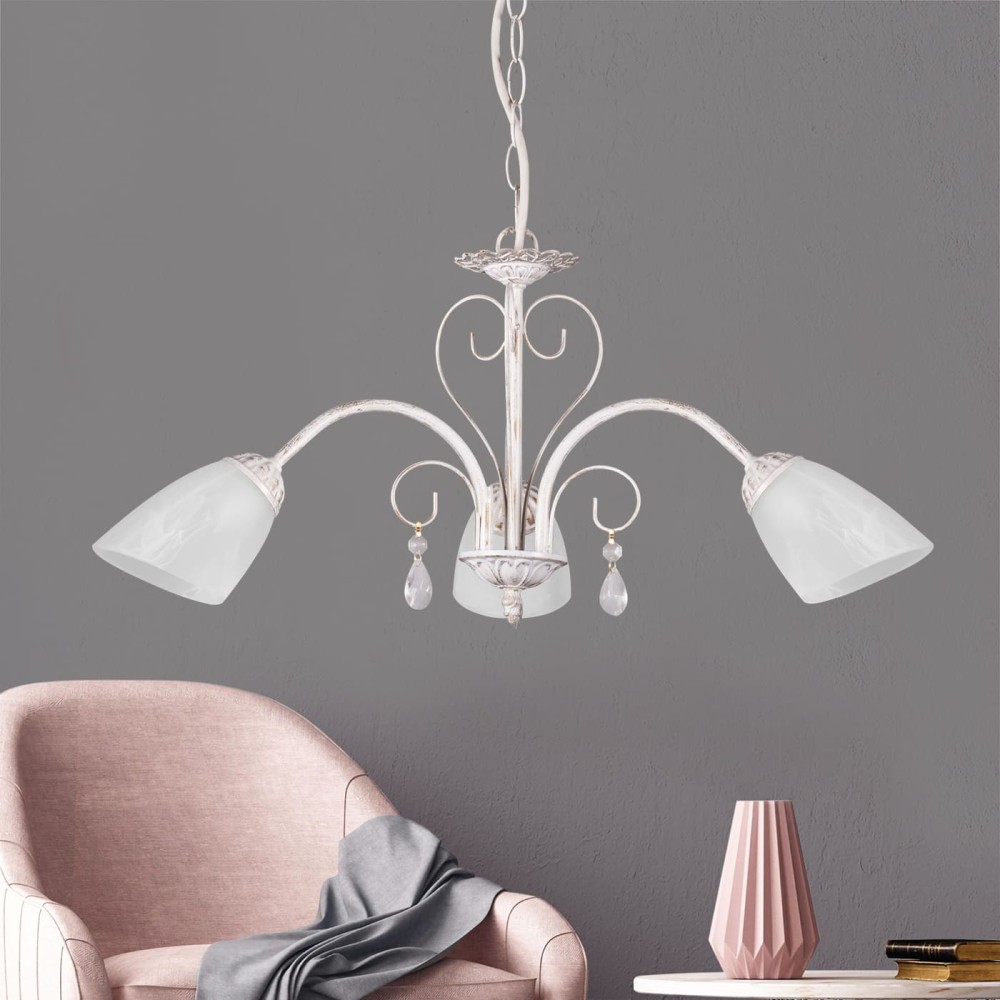 Люстра подвесная 3 плафона S2005-3 – Элегантное освещение для вашего дома в стиле классики и неоклассики Эта роскошная подвесная люстра S2005-3 от бренда ПЕТРАСВЕТ – идеальное решение для создания атмосферы уюта и изысканности в вашем интерьере. Сочетая в себе традиционные элементы классического дизайна с современными акцентами, эта люстра станет настоящим украшением любой комнаты. Произведенная в России, она отличается высоким качеством исполнения и долговечностью. Основные характеристики и преимущества: Стиль: Люстра S2005-3 воплощает в себе идеальное сочетание стилей классики, неоклассики и прованса. Ее элегантный дизайн и изысканные детали прекрасно впишутся в интерьеры в различных стилях, от традиционных до современных. Особенно хорошо она будет смотреться в гостиных, столовых, спальнях и других помещениях, где требуется создать атмосферу роскоши и уюта. Дизайн: Люстра выполнена из металла белого цвета с патиной золота, что придает ей благородный и респектабельный вид. Использование патины создает эффект состаривания, добавляя светильнику глубины и текстуры. Декоративные элементы в виде хрустальных подвесок делают люстру поистине уникальной и привлекательной. Хрусталь не только красиво переливается светом, но и способствует рассеиванию света, создавая мягкое и комфортное освещение. Размеры: Ширина основания люстры составляет 12 см, а высота – 54-71 см. Ширина люстры – 60 см, высота – 54-71 см. Размеры коробки: 20 см (В) x 37 см (Д) x 27 см (Ш). Эти размеры позволяют подобрать люстру практически к любой подвесной точке. Производство: Люстра произведена в России, что гарантирует высокое качество материалов и сборки. Количество ламп: В люстре установлено три плафона, что обеспечивает достаточное освещение для среднего размера помещения. Тип цоколя: Цоколь люстры типа Е14 – стандартный и широко распространенный тип цоколя, что упрощает замену ламп. Тип монтажа: Люстра предназначена для подвесного монтажа, что позволяет установить ее на любую подвесную точку. Крепление осуществляется с помощью крюка, что обеспечивает надежность и безопасность установки. Тип освещения: Люстра совместима с различными типами ламп: накаливания, светодиодными и люминисцентными. Вы можете выбрать лампы, которые лучше всего соответствуют вашим потребностям и предпочтениям. Светодиодные лампы, например, являются энергосберегающим вариантом и обеспечивают длительный срок службы. Световой поток: 2250 люмен – это достаточный световой поток для освещения площади до 15 квадратных метров. Напряжение: 220 вольт – стандартное напряжение в большинстве жилых помещений. Гарантия: Срок гарантии на люстру составляет 7 лет, что свидетельствует о высоком качестве и надежности изделия. Совместимость: Люстра совместима с различными типами ламп, что дает вам возможность выбрать оптимальный вариант освещения для вашего помещения. Уникальность: Хрустальные подвески придают этой люстре неповторимый и роскошный вид, делая ее особенной и привлекательной. Комплектация: В комплектацию люстры входят светильник и паспорт. Детали, которые делают эту люстру особенной: Материал плафона: Материал плафона – стекло, что обеспечивает его прочность, долговечность и устойчивость к воздействию влаги и загрязнений. Патиновая золотая отделка: Патинированная золотая отделка придает свет