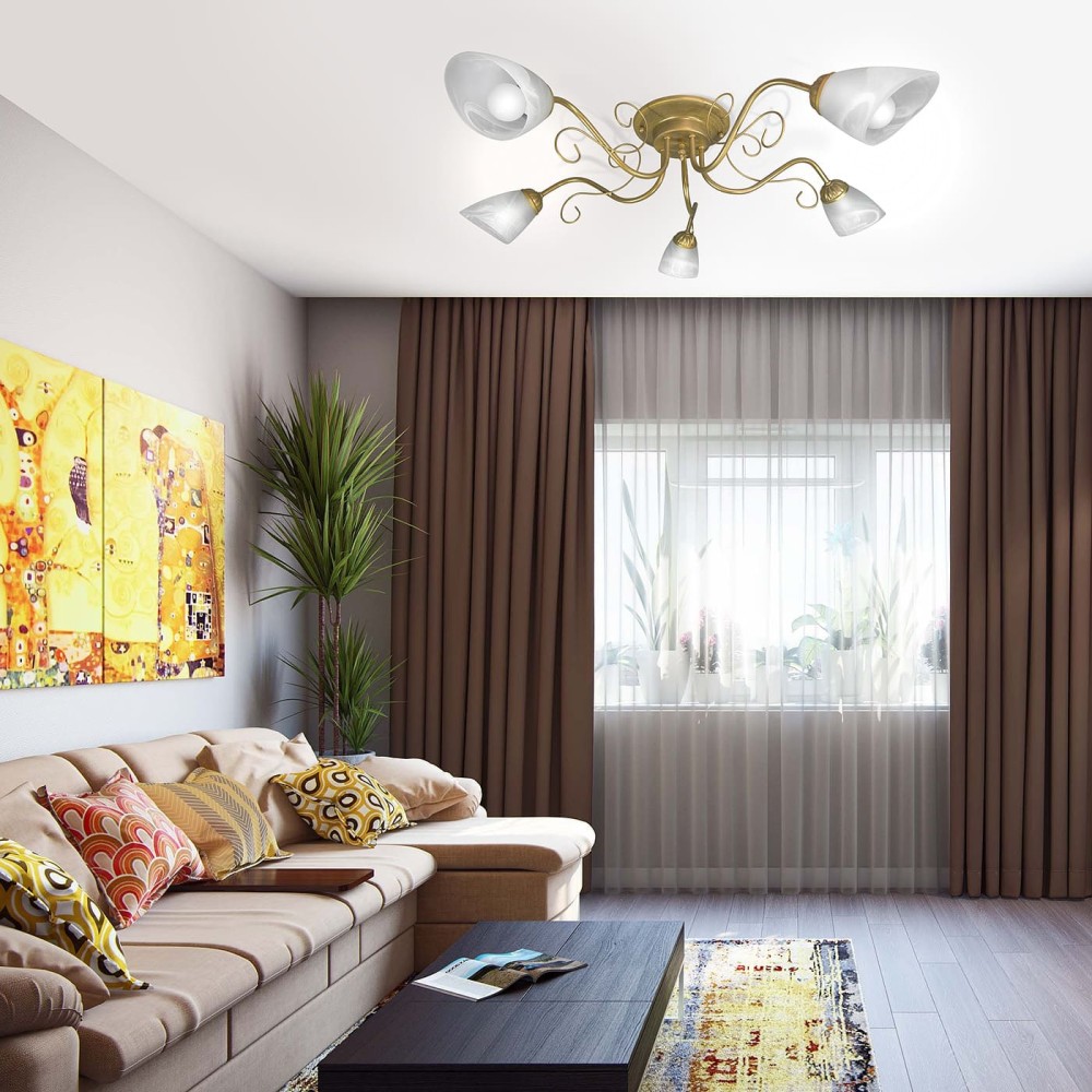 Люстра потолочная 5 плафонов S2453-5 – Изысканный Классический Осветитель для Вашего Дома Эта великолепная люстра – идеальное сочетание элегантности, функциональности и долговечности. Она станет настоящим украшением вашего интерьера, создавая атмосферу уюта и роскоши в любом помещении. S2453-5 от бренда Петрасвет, российского производителя, – это не просто светильник, это инвестиция в стиль и комфорт вашего дома. Дизайн и Стиль: Люстра S2453-5 воплощает в себе идеальное сочетание стилей: классики, неоклассики и прованса. Благодаря своему изысканному дизайну с богатой патиной золота, она прекрасно впишется в интерьеры в различных стилях – от традиционных и торжественных до романтичных и уютных. Использование металла и стекла создает ощущение благородства и долговечности. Широкое основание (18 см) придает светильнику устойчивость и солидность, а элегантная форма плафонов и патина золота подчеркивают его роскошный вид. Вдохновленная классическими образцами, люстра сочетает в себе элементы ренессанса и модерна, создавая уникальный и неповторимый образ. Ее пропорции и детали тщательно продуманы, чтобы обеспечить гармоничное сочетание с другими элементами интерьера. Патинирование золота придает светильнику глубину и текстуру, создавая эффект старинного металла, который подчеркивает его эксклюзивность. Стиль неоклассики добавляет светильнику нотку современности, делая его актуальным и востребованным. Прованский стиль придает светильнику легкую романтичность и деревенскую атмосферу. Технические характеристики и особенности: Бренд: Петрасвет – российский производитель, известный своим качеством и надежностью. Выбор Петрасвет гарантирует долговечность и безопасность вашего светильника. Страна производства: Россия – высокое качество и соответствие европейским стандартам. Материал светильника: Металл – прочный и долговечный материал, устойчивый к коррозии и механическим повреждениям. Цвет светильника: Золото с патиной золота – создает эффект старинного металла, подчеркивает роскошь и элегантность светильника. Тип цоколя: E14 – стандартный цоколь, совместимый с большинством ламп. Модель: S2111 – уникальный дизайн и высокое качество исполнения. Количество ламп: 5 – обеспечивает равномерное освещение помещения. Тип ламп: Накаливания, светодиодная, люминисцентная – позволяет выбрать оптимальный тип ламп в зависимости от ваших предпочтений и бюджета. (Примечание: рекомендуется использовать светодиодные лампы для экономии электроэнергии и увеличения срока службы светильника). Световой поток: 3750 лм – обеспечивает достаточное освещение площади до 15-20 квадратных метров. Напряжение: 220 В – стандартное напряжение в большинстве бытовых электросетей. Направление рассеивателя: Вниз – обеспечивает направленное освещение, идеально подходящее для столовых, гостиных и других помещений, где требуется акцентное освещение. Тип монтажа: Потолоный – удобство установки и монтажа. Габариты: Ширина 84 см, высота 25 см, размеры коробки: H 30 см, L 32 см, W 31 см – оптимальные размеры для большинства потолков. Площадь освещения: 15-20 м? – подходит для помещений среднего размера. Срок гарантии: 7 лет – уверенность в качестве и надежности продукта. Комплектация: Светильник, паспорт – все необходимое для установки и эксплуатации. Преимущества и особ