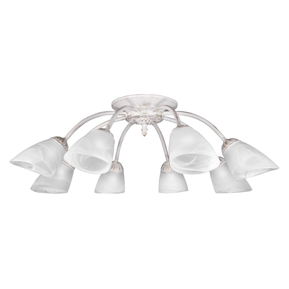 Люстра потолочная большая белая с золотом 8 плафонов дизайнерская Петрасвет производство люстр №1 в России S8053-8, 8хЕ14 макс, 60Вт с плафонами из стекла, стиль - классический, арматура - металл, цвет светильника- белый с патиной золота, размеры светильника (LxWxH) - 80x80x25, вес - 3,1 кг, Люстра на 2 включения, Люстра потолочная для натяжных потолков и освещение 24-32 м2 помещения в зависимости от мощности лампочек Е14, Все потолочные светильники подходят и для натяжных и подвесных потолков, Люстра потолочная на 8 рожков подходит для освещения зала, кабинета, гостиной, спальни, столовой, детской, кухни, Заводсткая гарантия завода Петрасвет 7 лет, Потолочный светильник на 8 лампочек в зал плотно уложен в коробке, Потолочная люстра просто собирается, крепится к потолку стандартной потолочной планкой длиной 18 см, Лампочки светодиодные LED подбираются по следующим параметрам: для яркого освещения - 3 Вт на 1 м2 комнаты, для среднего - 2 Вт на 1 м2, В случае боя или не комплекта, вышлем новый за свой счет в день обращения,