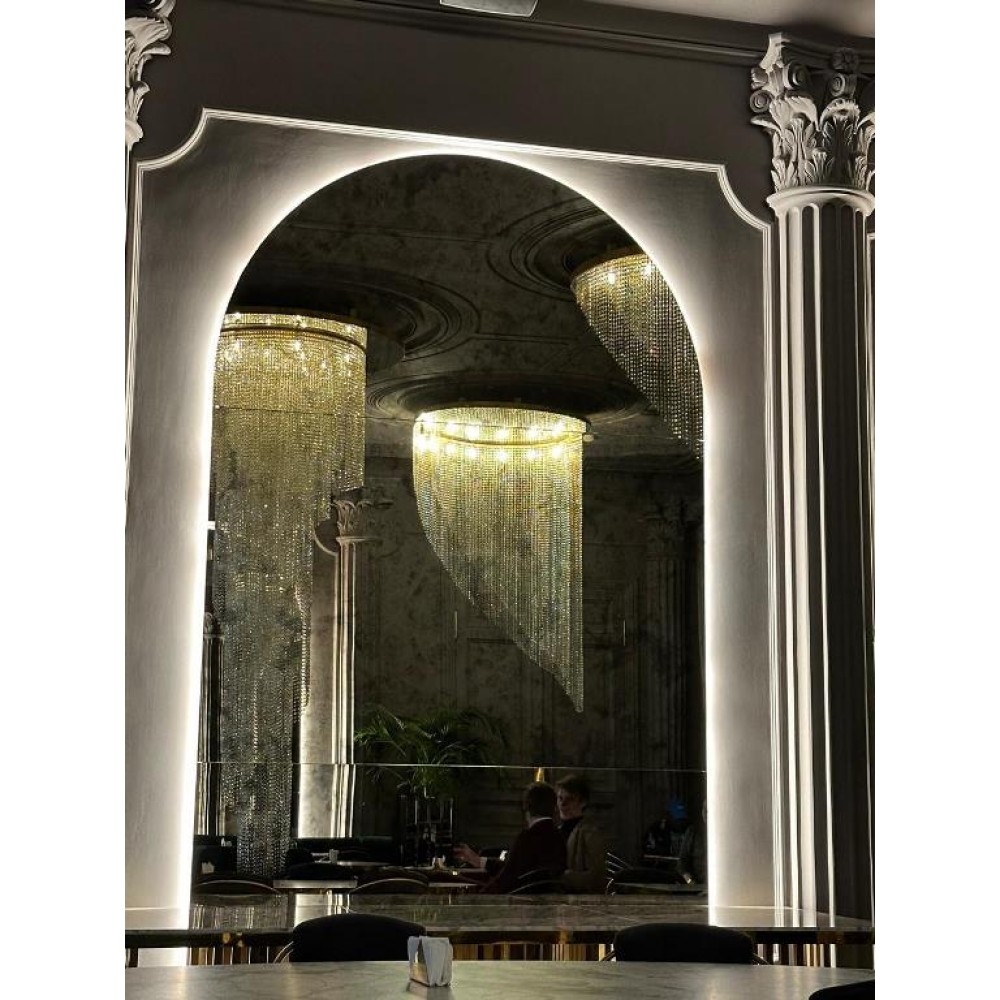 Люстры под заказ предлагают безграничные возможности для дизайна, Заказчик может обсудить с дизайнером свой замысел, выбрать материалы, формы и размеры светильников, что делает каждую люстру поистине уникальной, Хрустальные элементы придают элегантность, а зеркала создают эффект простора и позволяют игре света помочь в создании атмосферы уюта и тепла,