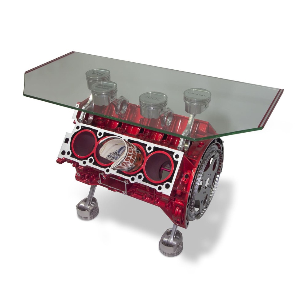 Дизайнерский стол Двигатель V8 дизайнерская Петрасвет производство люстр №1 в России S4011 сдлаен из автомобильного восьми цилиндрового двигателя, отпескоструен, покрашен порошковой краской, стекло каленое